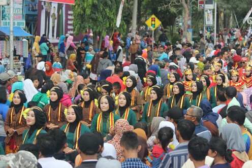 Tak hanya menjadi pengiring gunungan hasil bumi dari Kendal, 20 siswi SMKN 1 Kendal juga menunjukkan kepiawaiannya dengan menyuguhkan kreativitas seni tari yang dipadu dengan kostum unik.